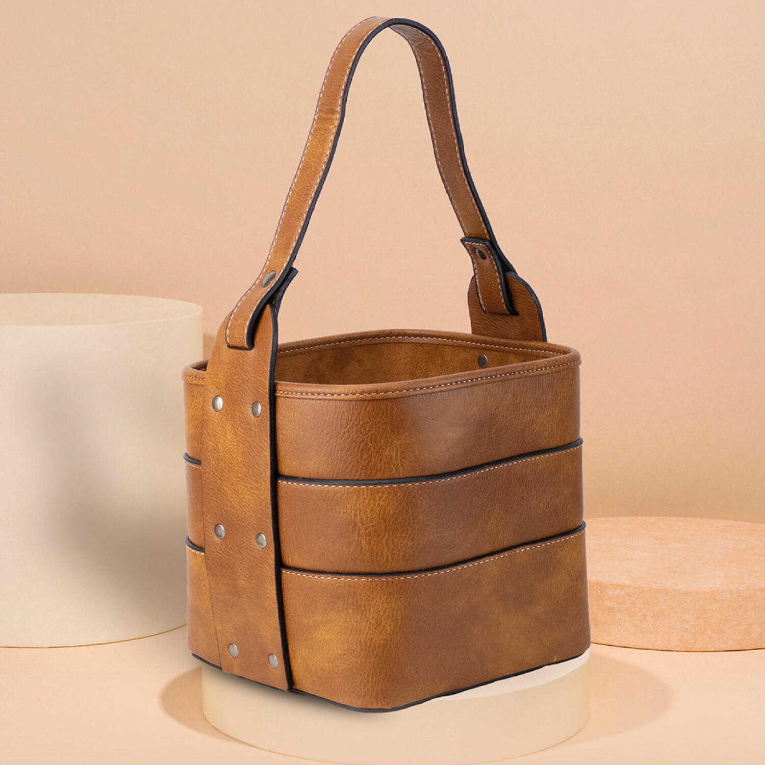 Posa termo en símil cuero, base firme con asa reforzada. Cuenta con una división al medio para mas comodidad.