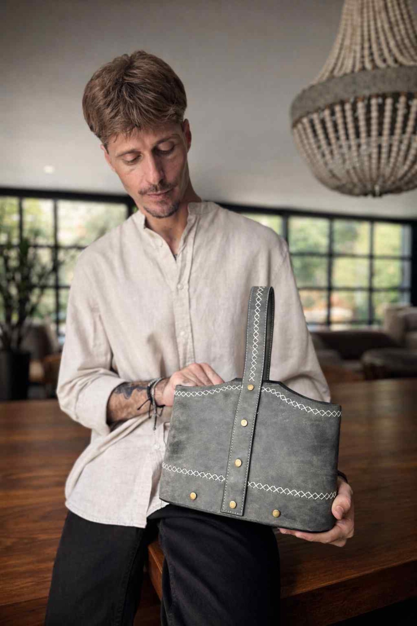 Posa termo en símil cuero con división al medio, asa resistente y costura artesanal de alta calidad. Diseño funcional y estético con detalle en tacha. Ideal para transportar tu termo y mate con seguridad.