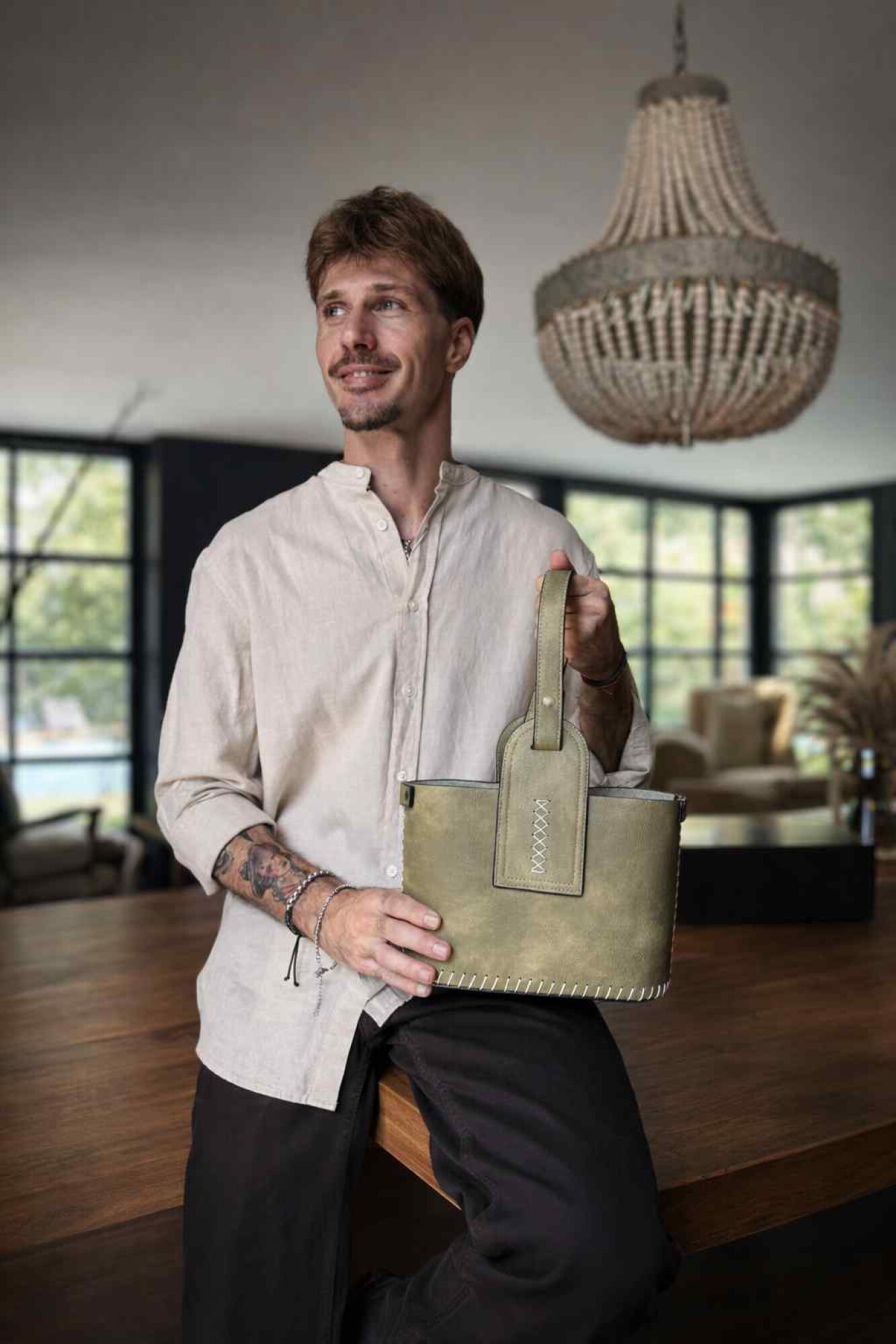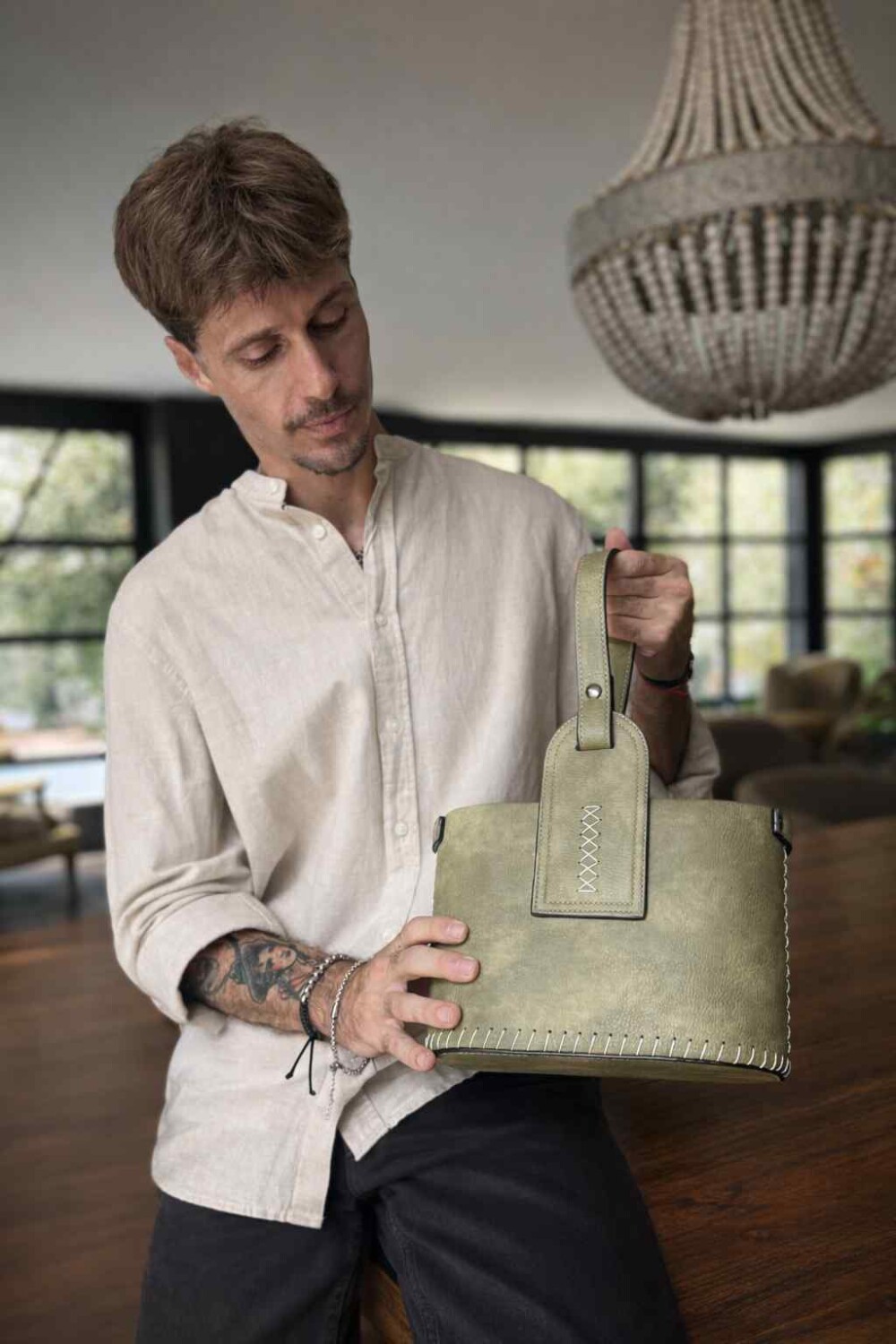 Posa termo En símil cuero con división al medio y asa fija de mano reforzada.