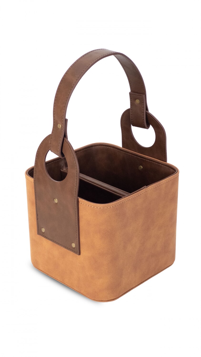 Posa termo para auto en símil cuero, con división interna, asa flexible y reforzada.