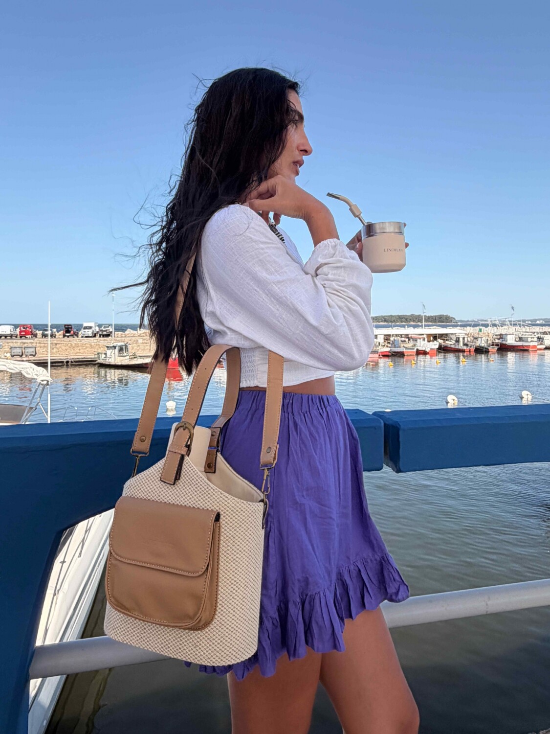 Posatermo con bolsillo al frente. División interna para termo y mate.