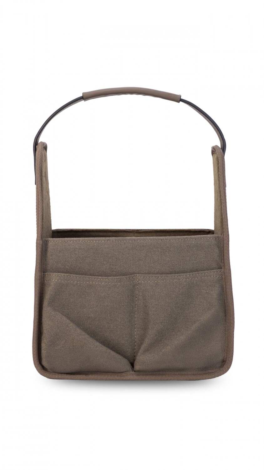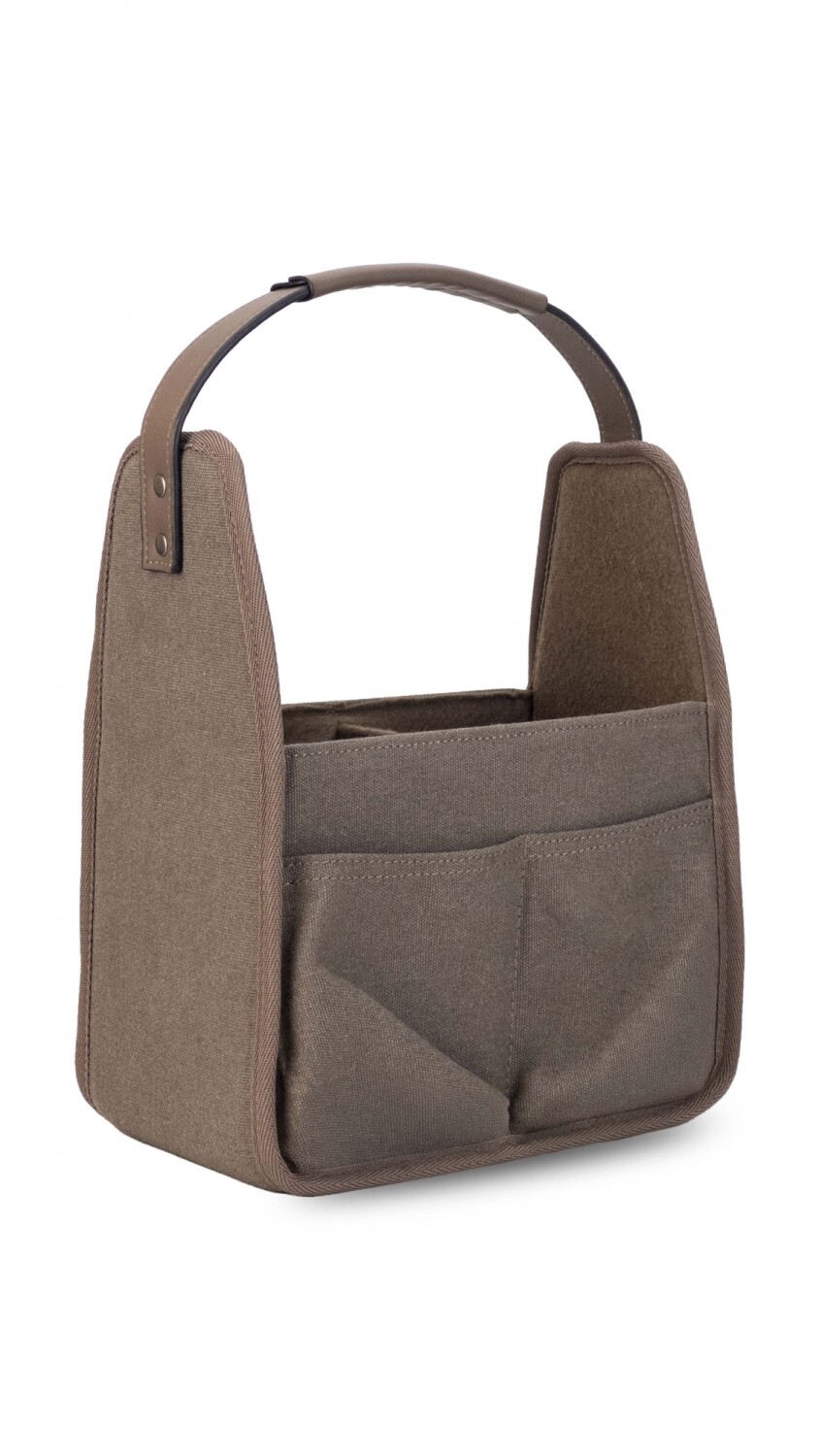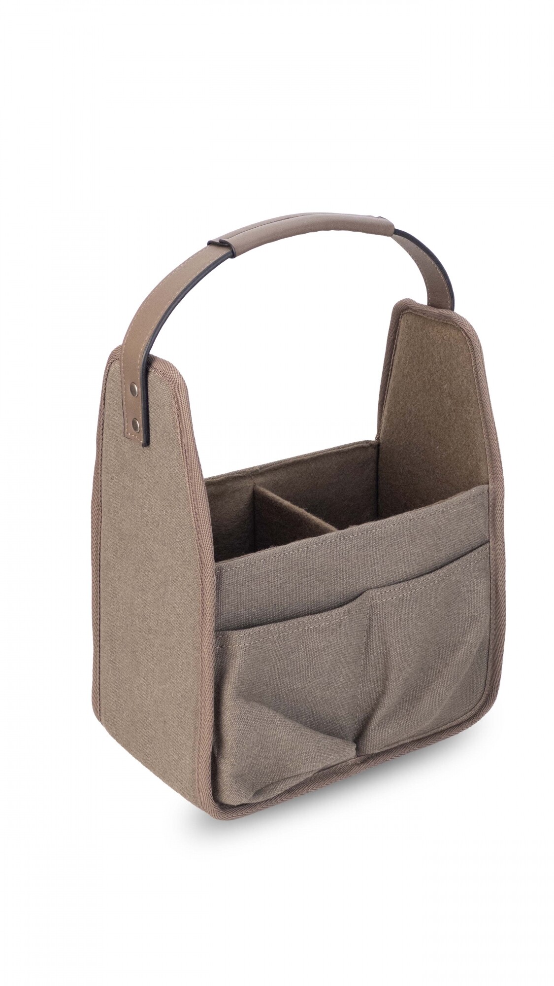 Posa termo rígido en tela canvas con división interna para el termo y mate con detalle en el asa de símil cuero.