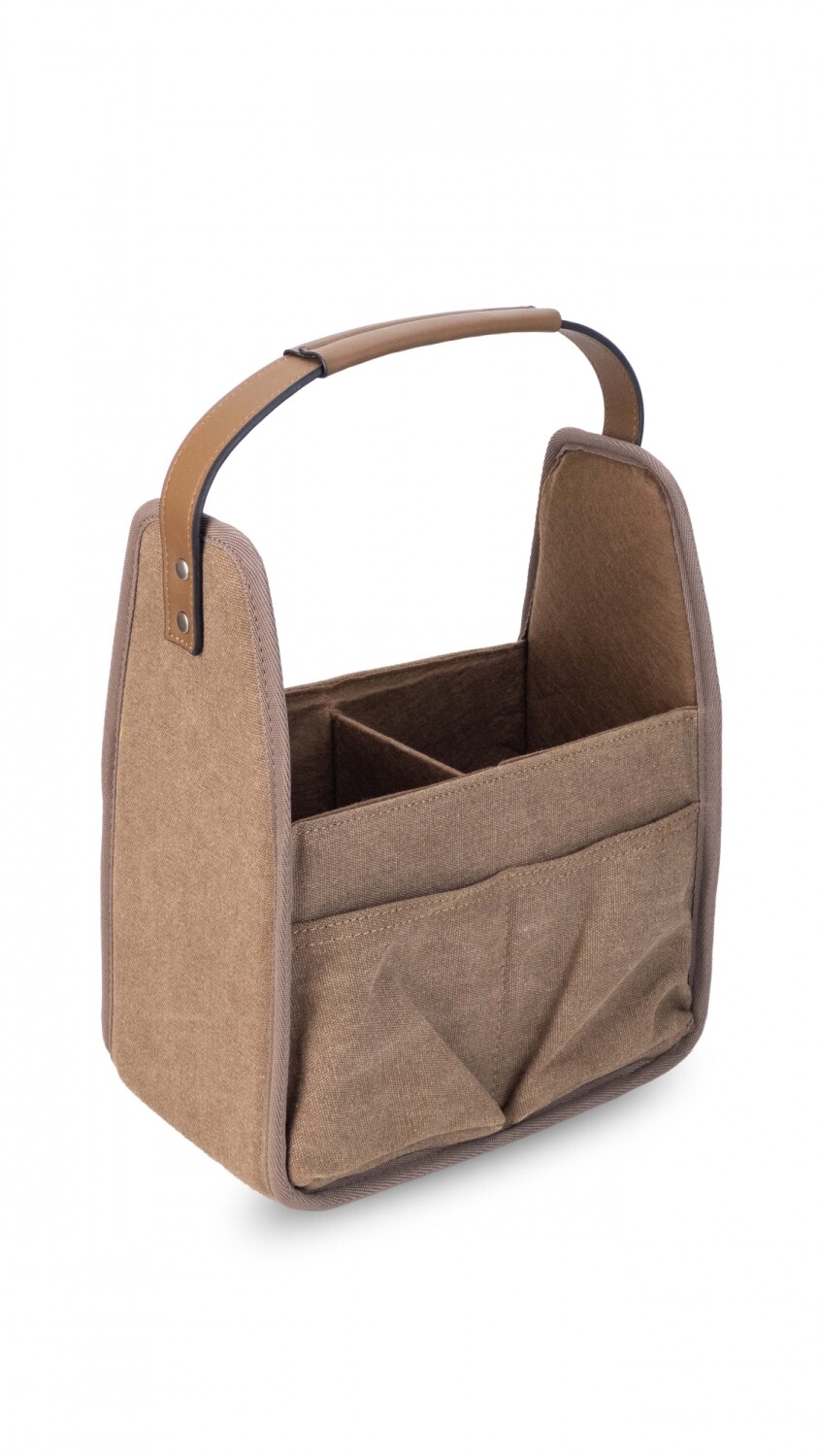 Posa termo rígido en tela canvas con división interna para el termo y mate con detalle en el asa de símil cuero.
