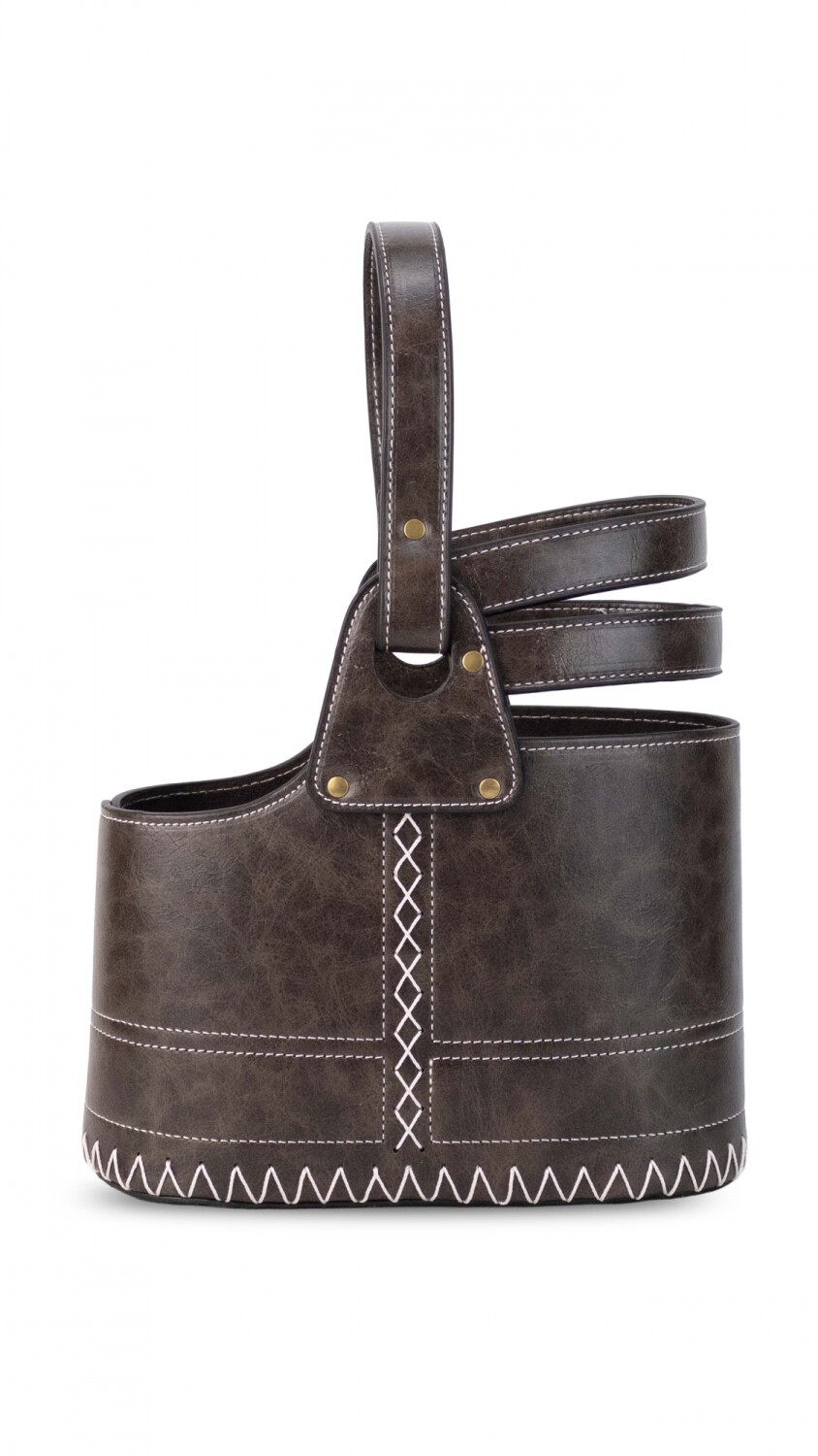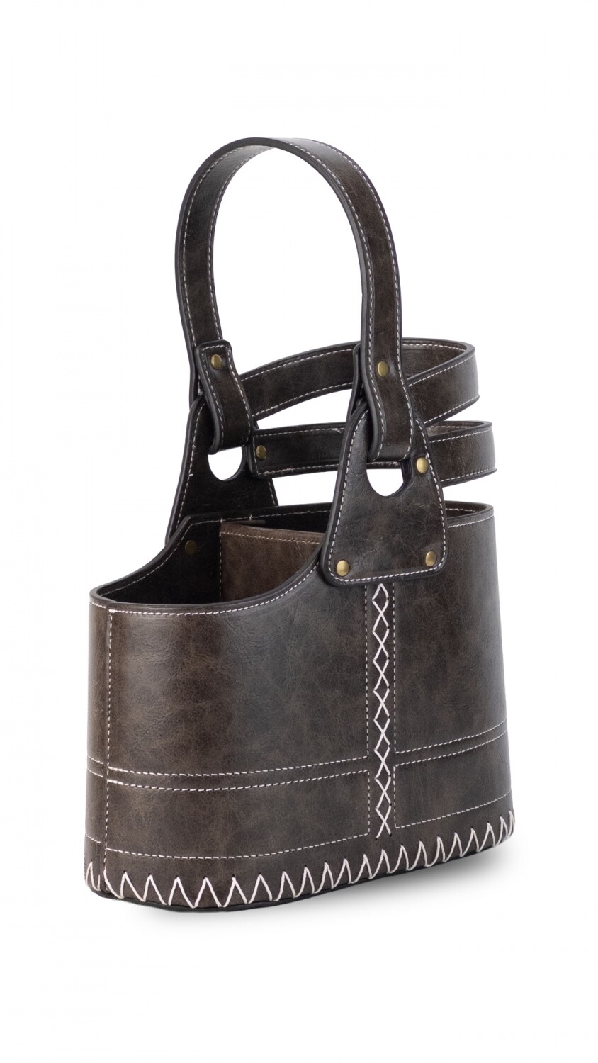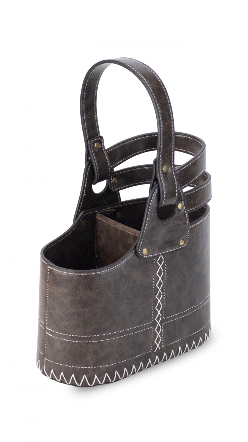 Posa termo en símil cuero con división al medio de excelente terminación. Manijas reforzadas y costuras decorativas que aportan estilo.