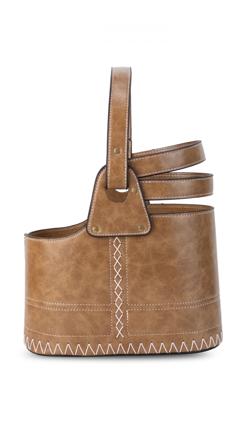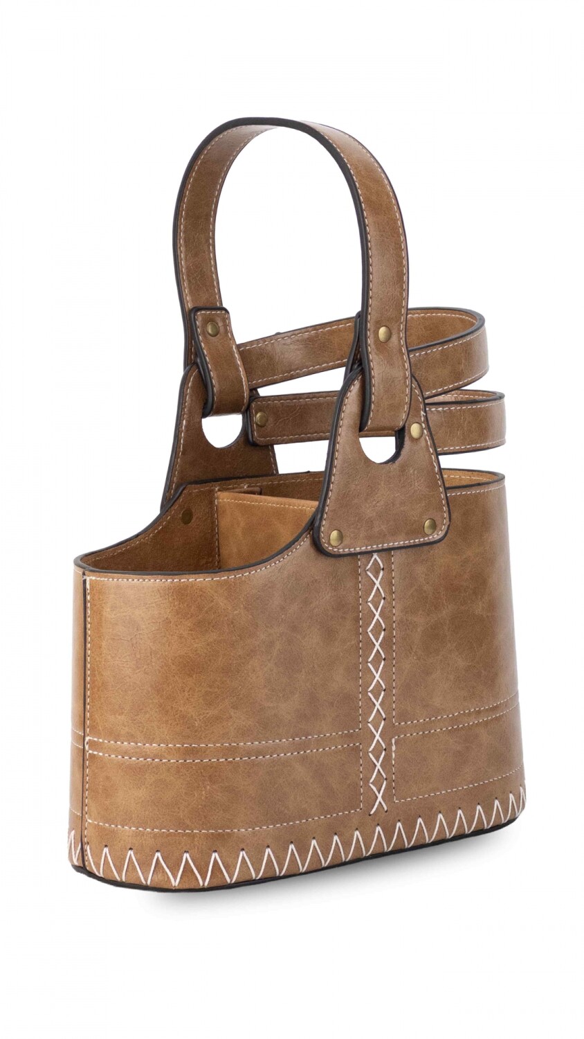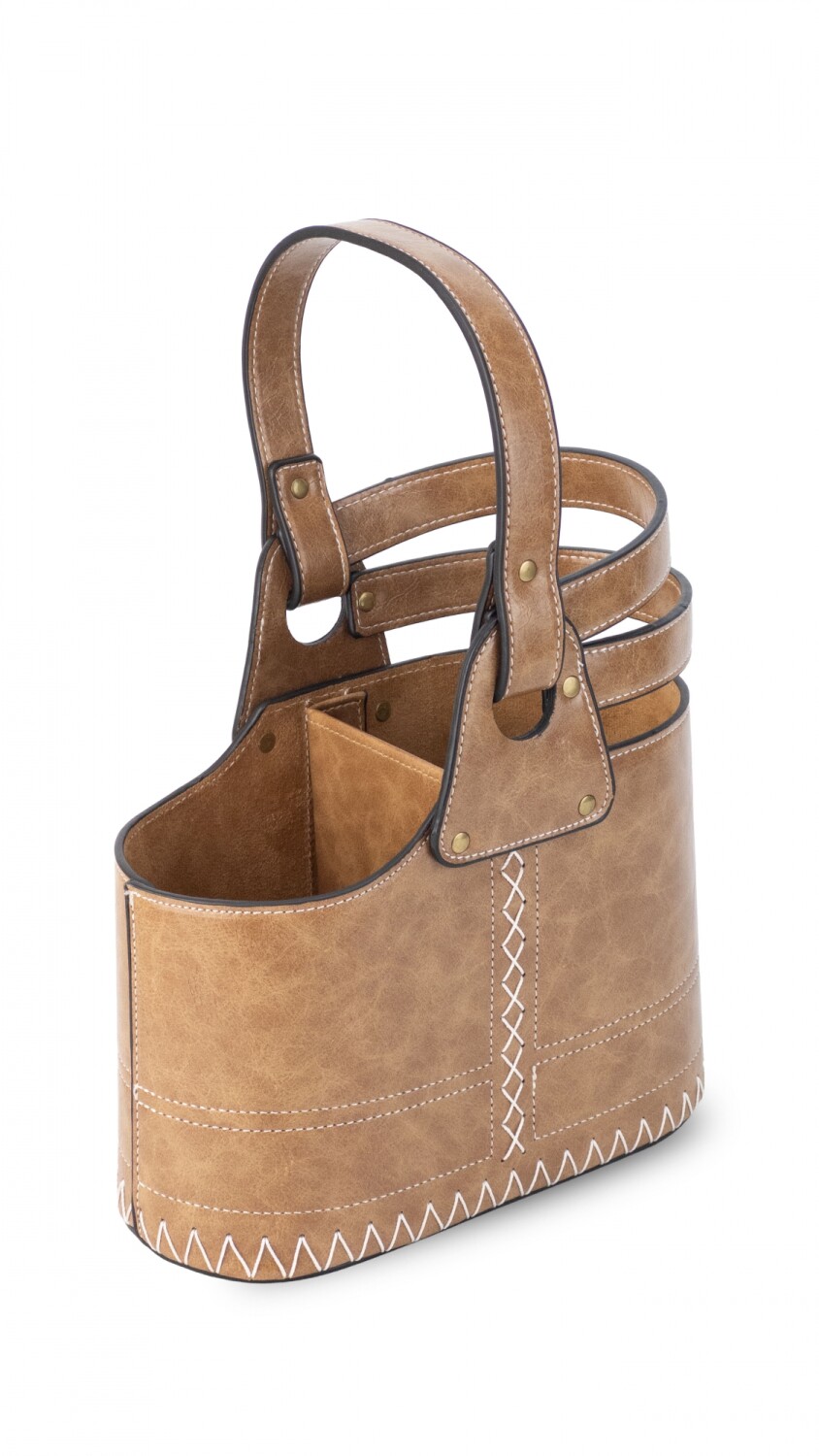 Posa termo en símil cuero con división al medio de excelente terminación. Manijas reforzadas y costuras decorativas que aportan estilo.