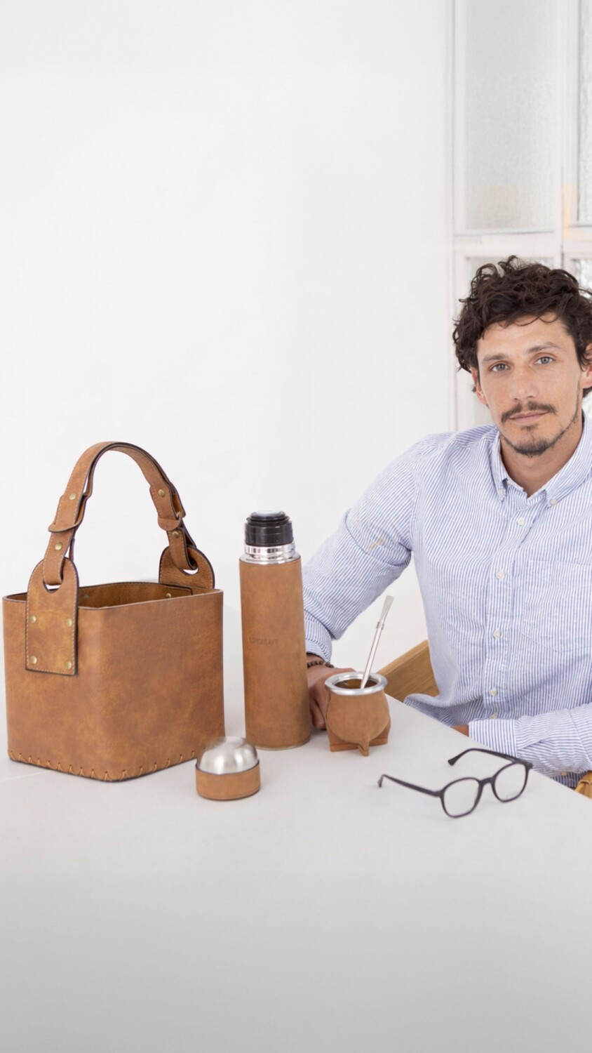 Posa termo en símil cuero tipo engrasado, con división al medio, resistente y de textura suave. Firme con asa reforzada y herrajes metálicos que aportan durabilidad. Ideal para acompañar tu equipo matero con practicidad.