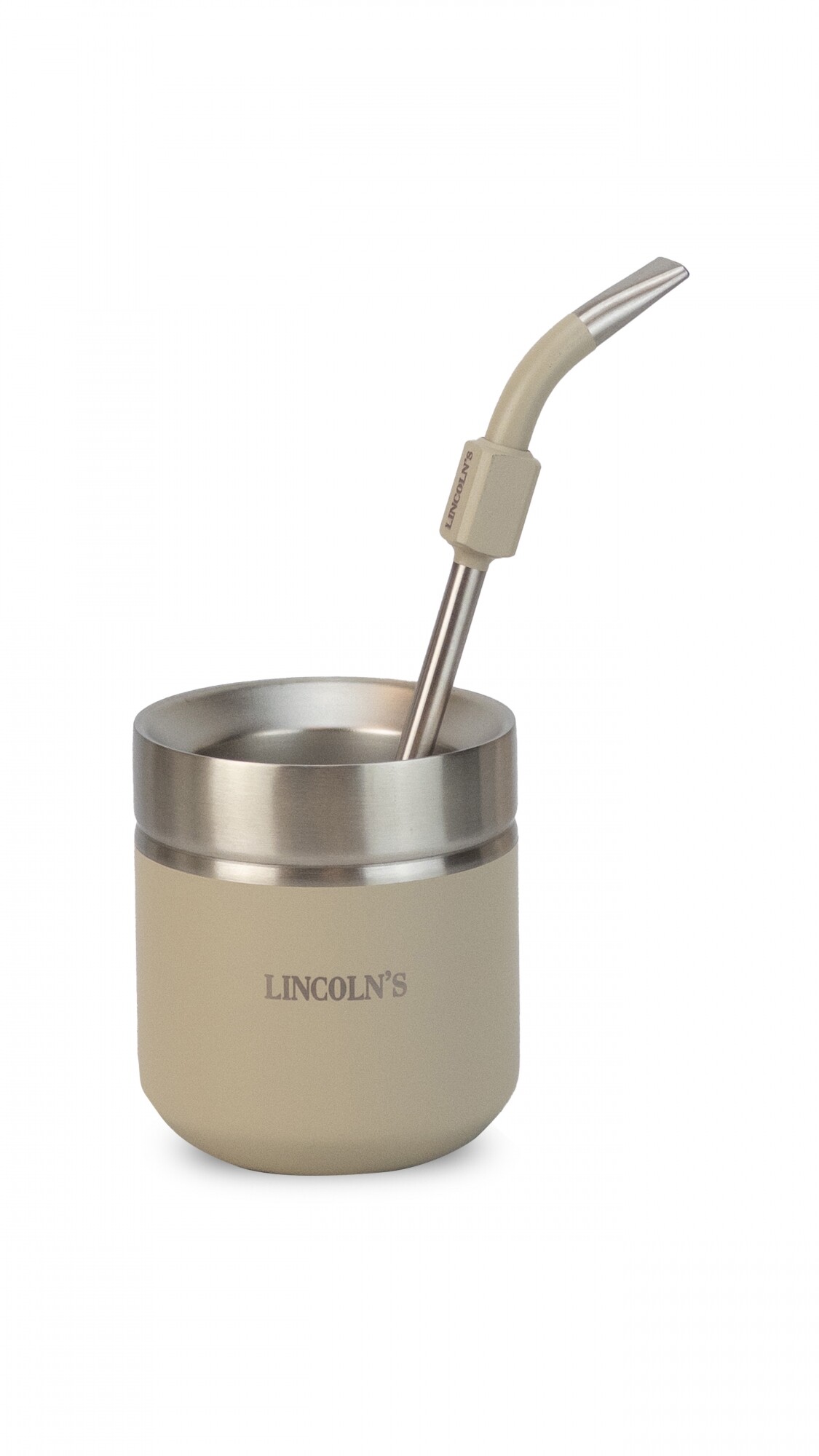 - Termo de acero inoxidable con capacidad de 750 ml. Doble pared y tapón a rosca, mate mas bombilla en acero inoxidable