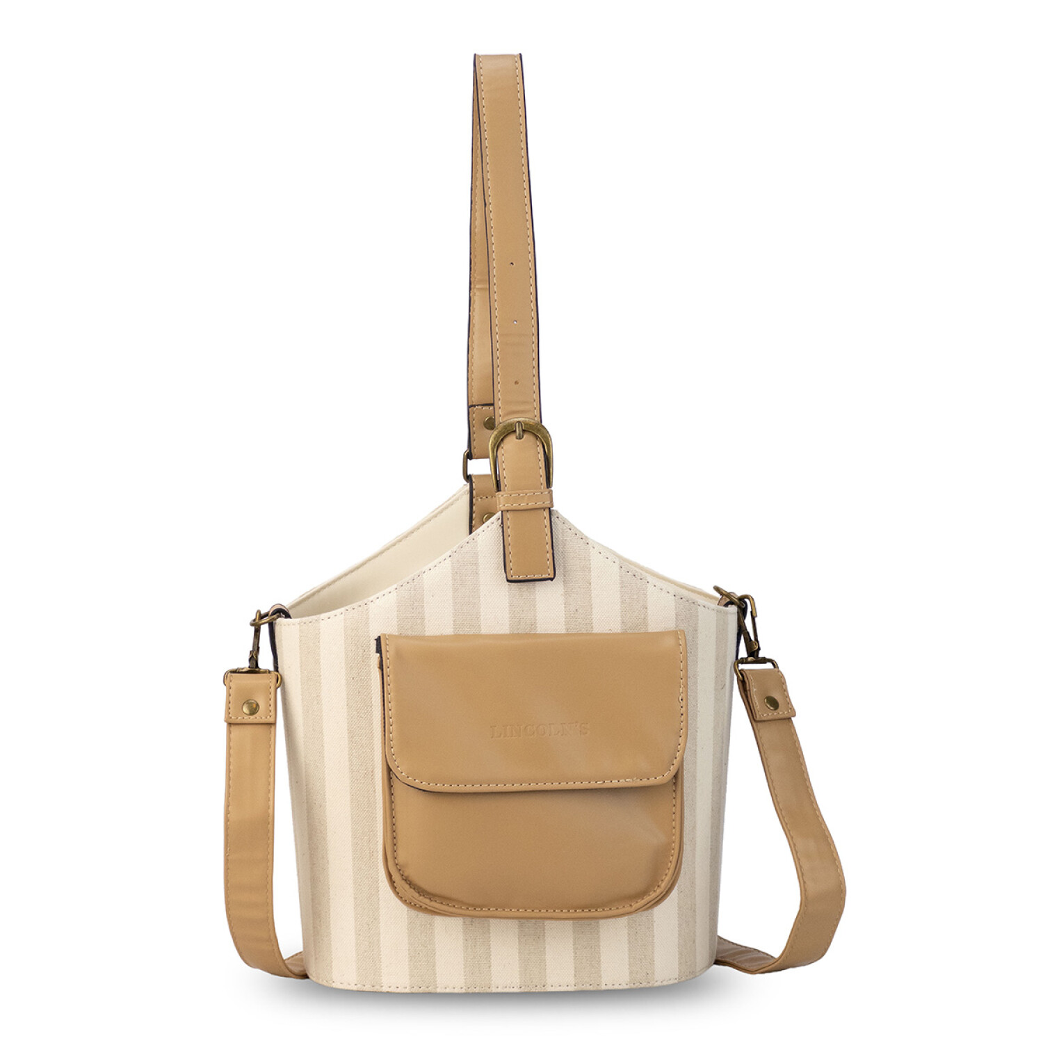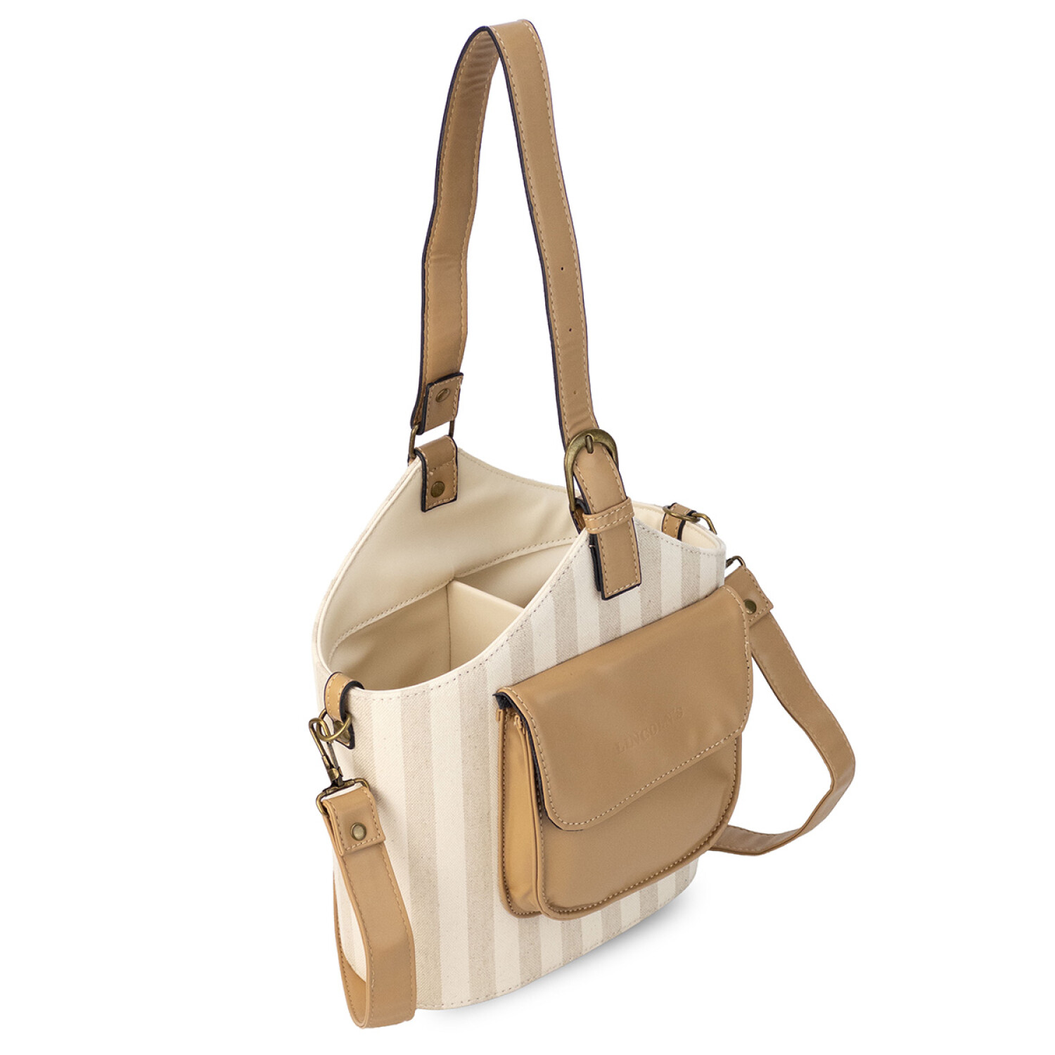 - Posa termo con bolsillo al frente. División interna con asa de mano y cuenta con asa larga desmontable.