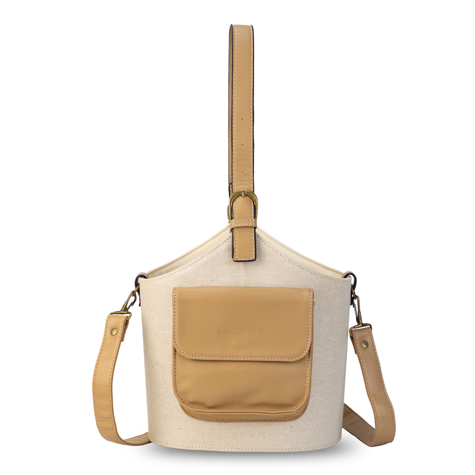 - Posa termo con bolsillo al frente. División interna con asa de mano y cuenta con asa larga desmontable.