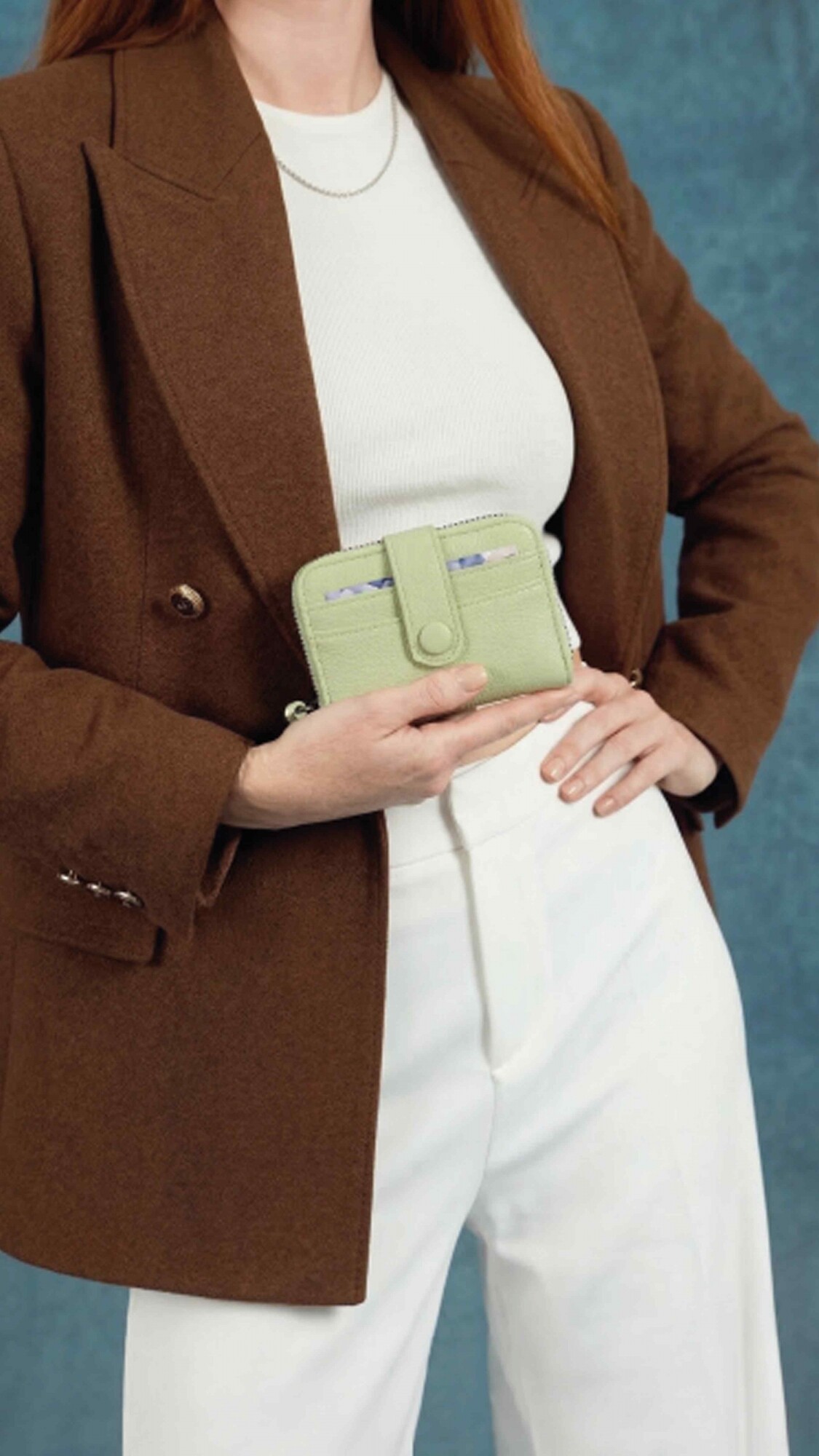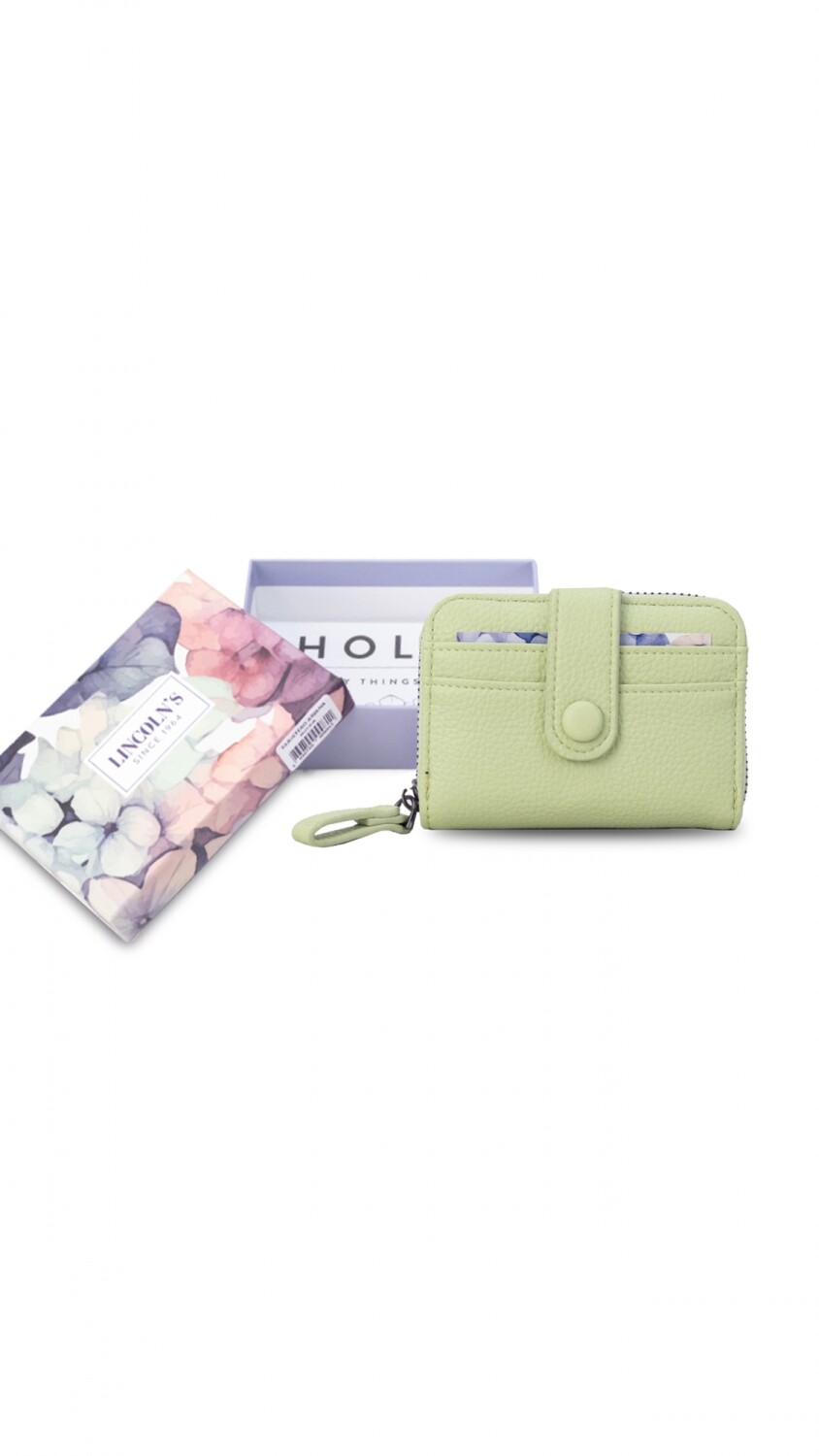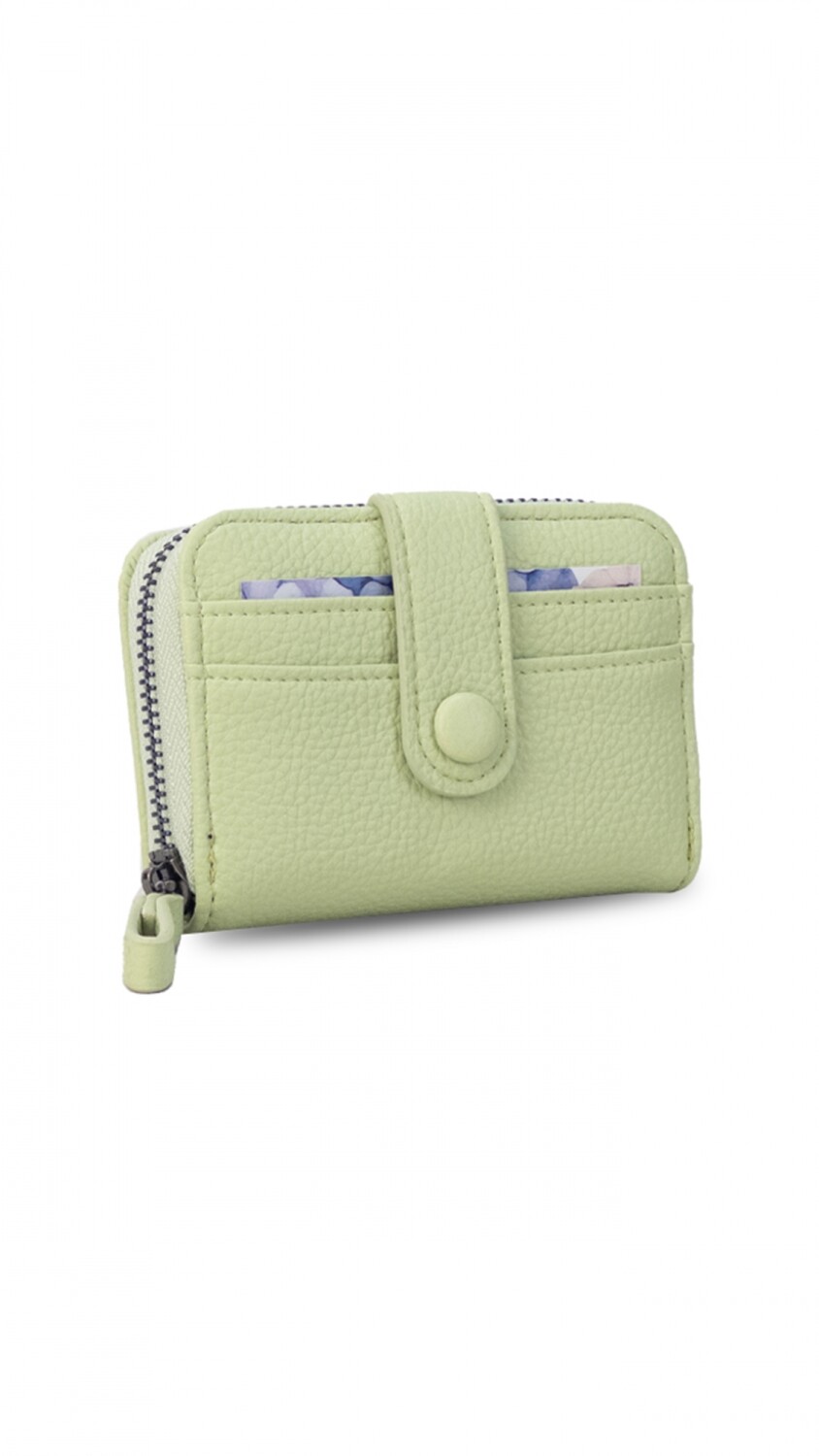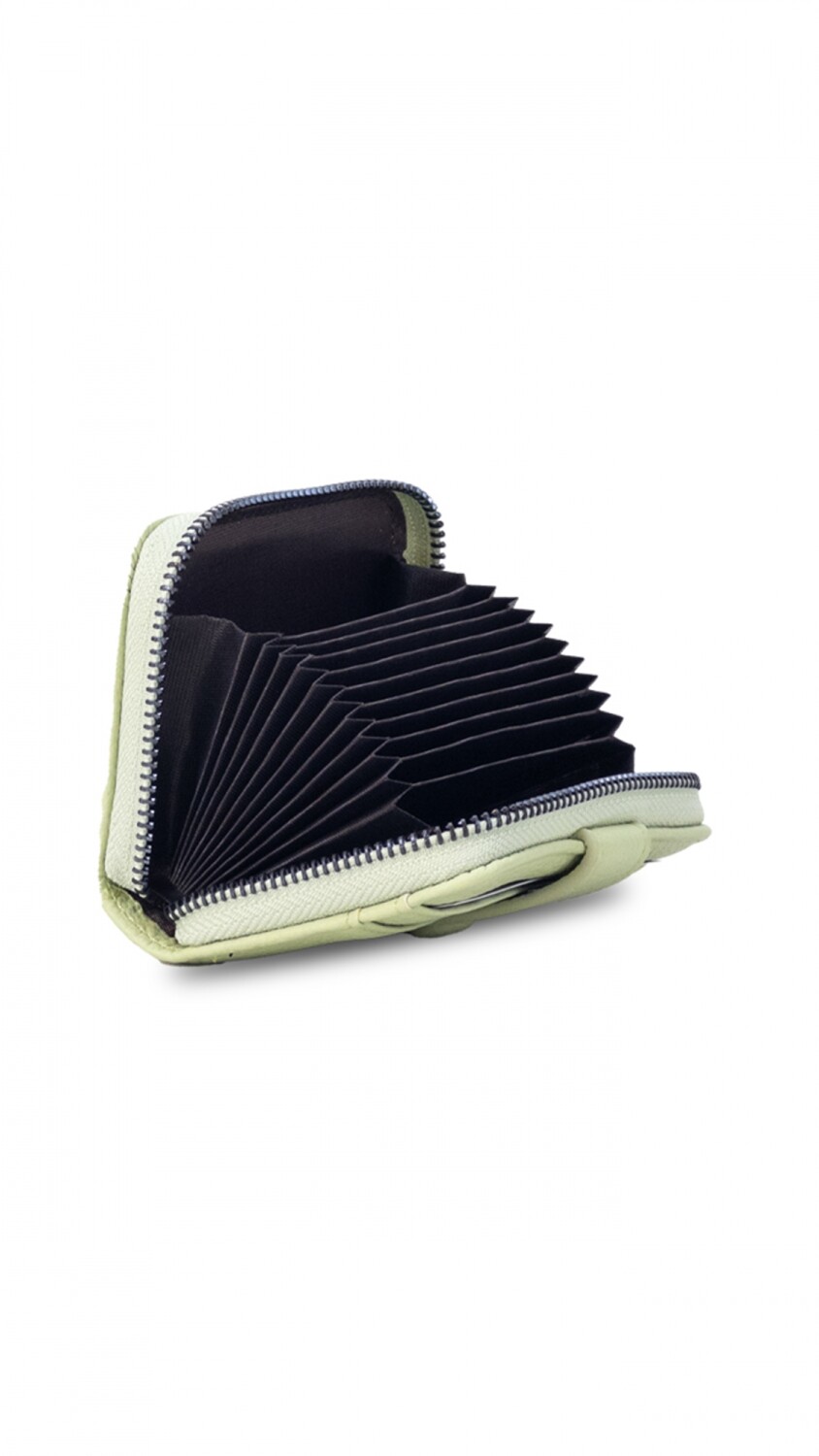 Este tarjetero abanico con cierre ofrece un diseño compacto y funcional, con capacidad para 10 tarjetas.