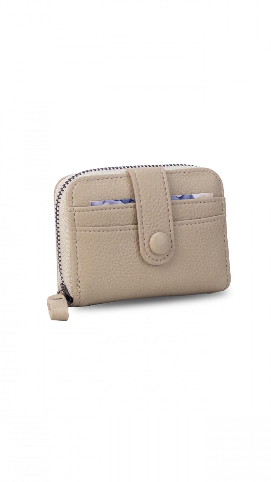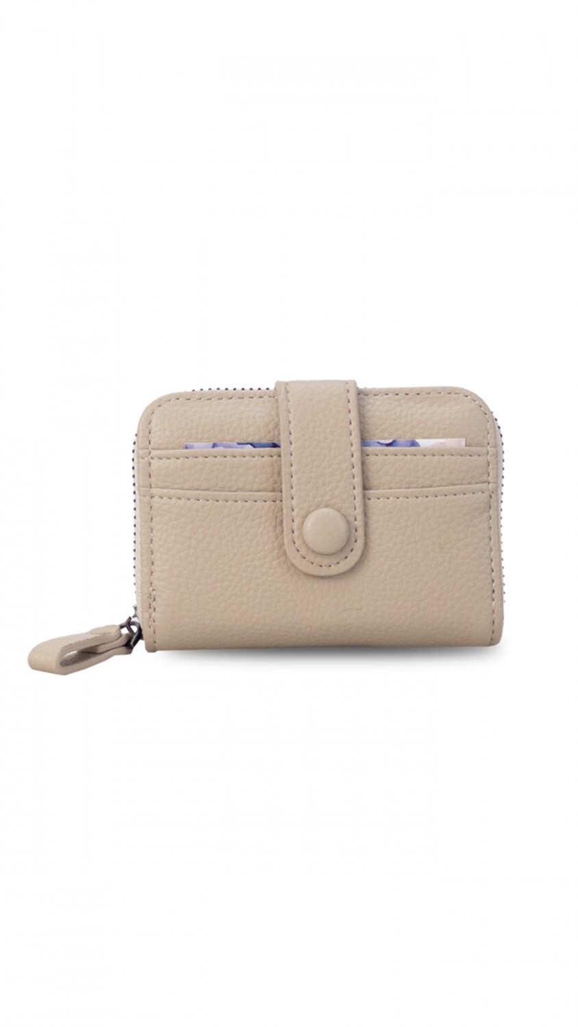Este tarjetero abanico con cierre ofrece un diseño compacto y funcional, con capacidad para 10 tarjetas.