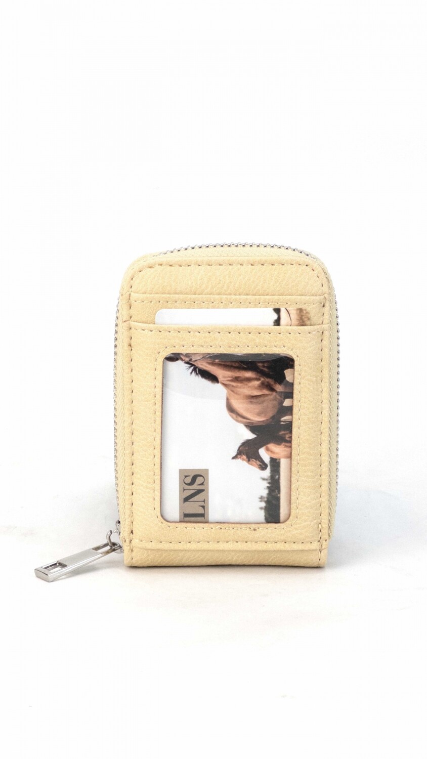 Tarjetero práctico con cierre alrededor, diseñado para almacenar hasta 10 tarjetas. La parte frontal cuenta con un espacio con visor para mostrar una tarjeta de forma rápida. Ideal para mantener tus tarjetas organizadas y accesibles.