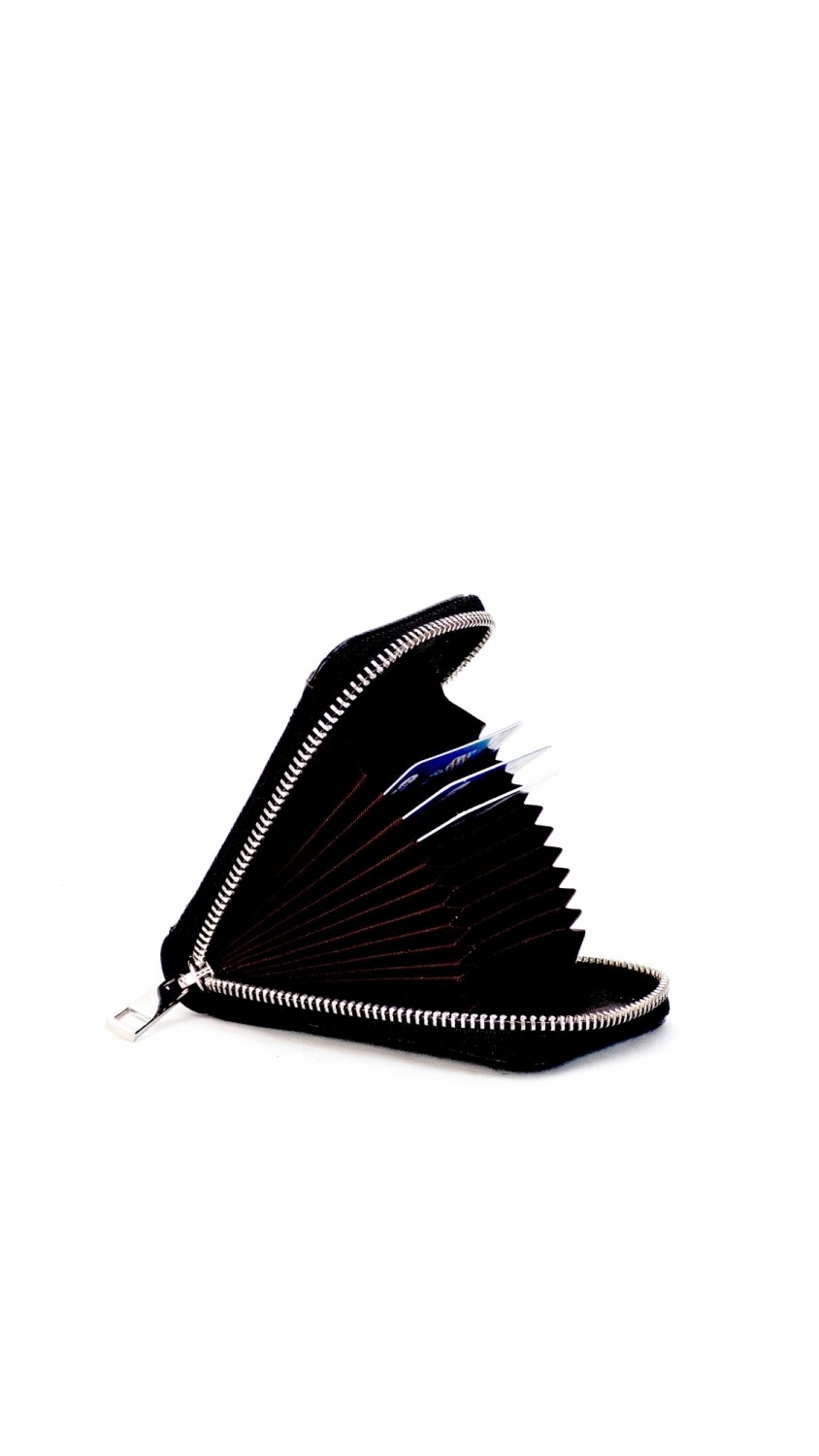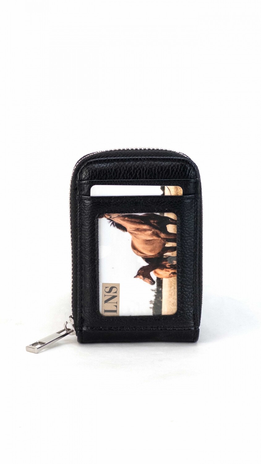 Tarjetero práctico con cierre alrededor, diseñado para almacenar hasta 10 tarjetas. La parte frontal cuenta con un espacio con visor para mostrar una tarjeta de forma rápida. Ideal para mantener tus tarjetas organizadas y accesibles.