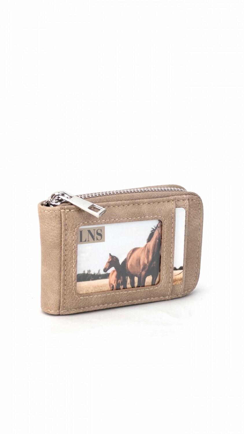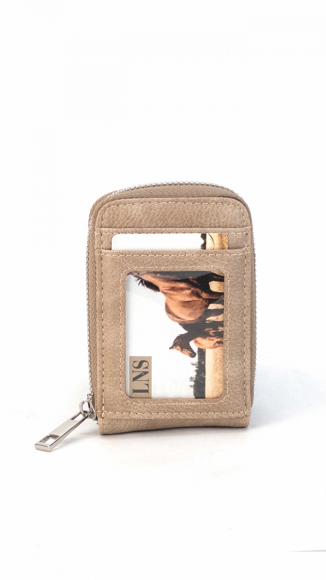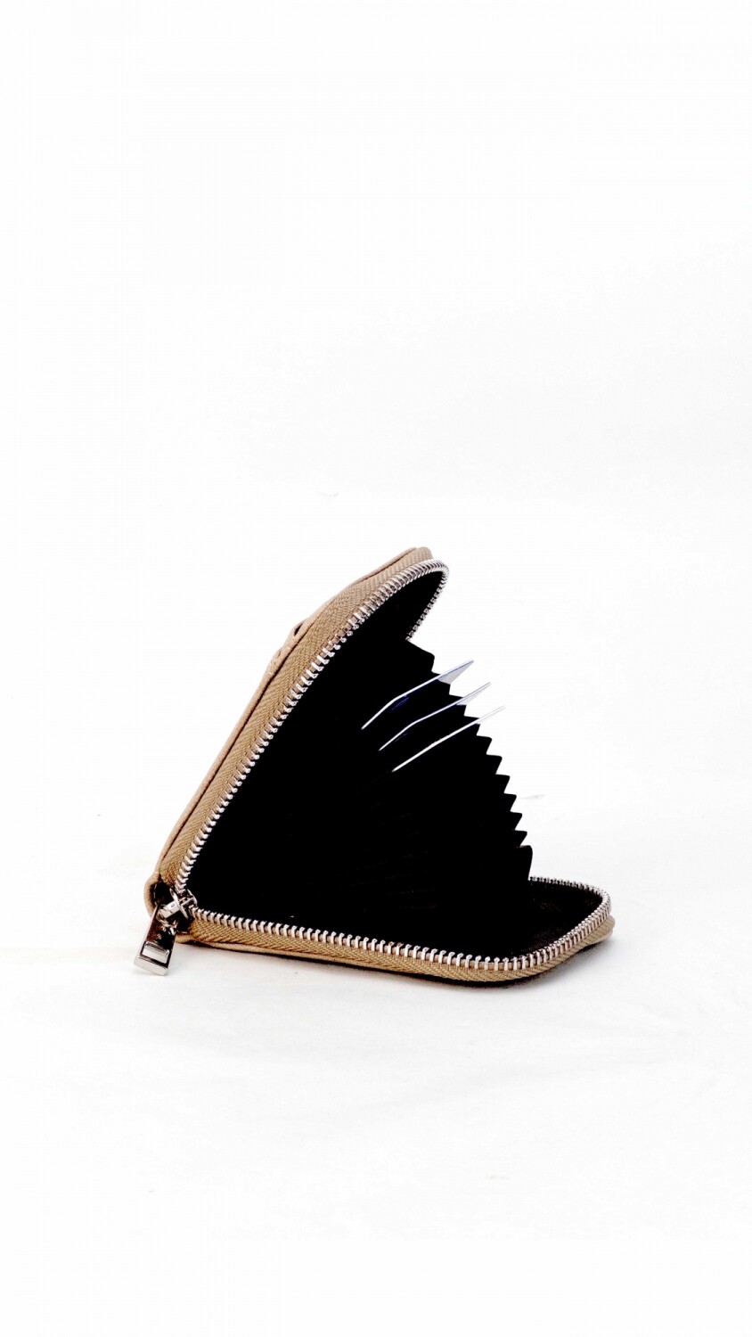 Tarjetero práctico con cierre alrededor, diseñado para almacenar hasta 10 tarjetas. La parte frontal cuenta con un espacio con visor para mostrar una tarjeta de forma rápida. Ideal para mantener tus tarjetas organizadas y accesibles.