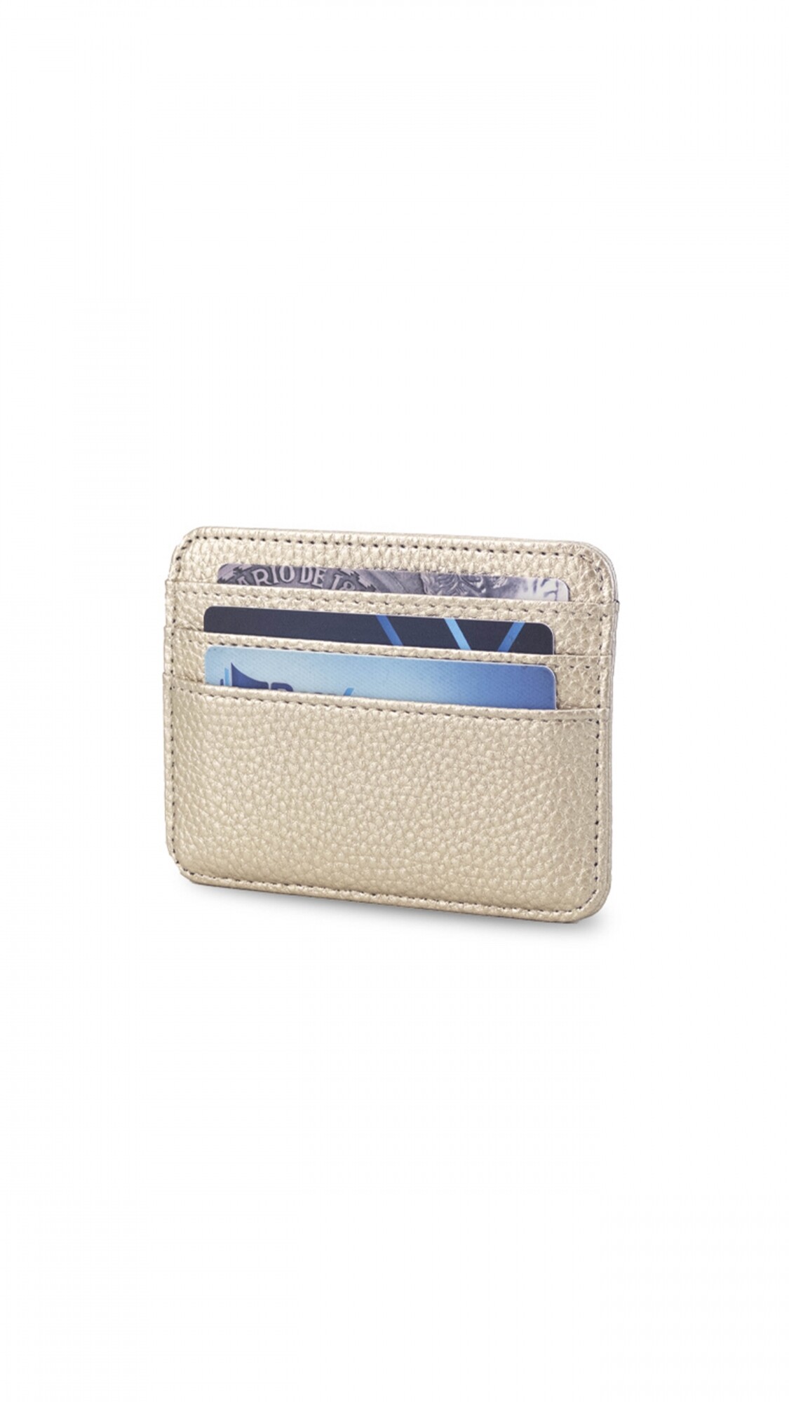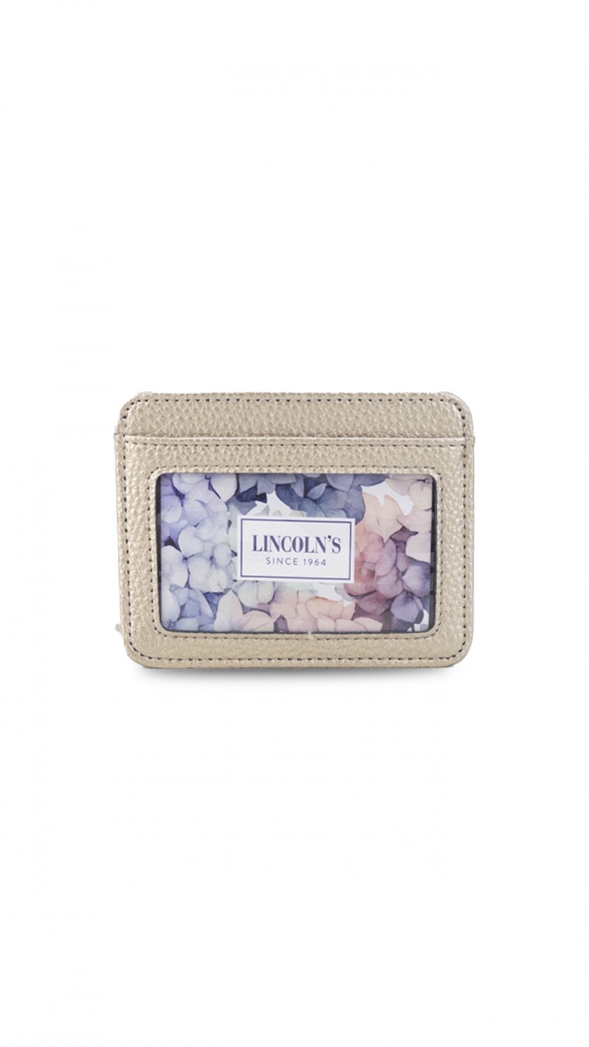 Este elegante tarjetero cuenta con un visor frontal para mostrar tu tarjeta favorita y espacio para tres tarjetas adicionales.
