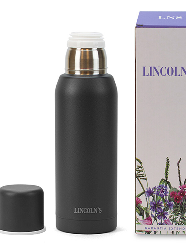 Termo de acero inoxidable con doble pared. Tapón a prueba de fugas. Conserva frío y calor por hasta 24hs. Capacidad 1000 ml.