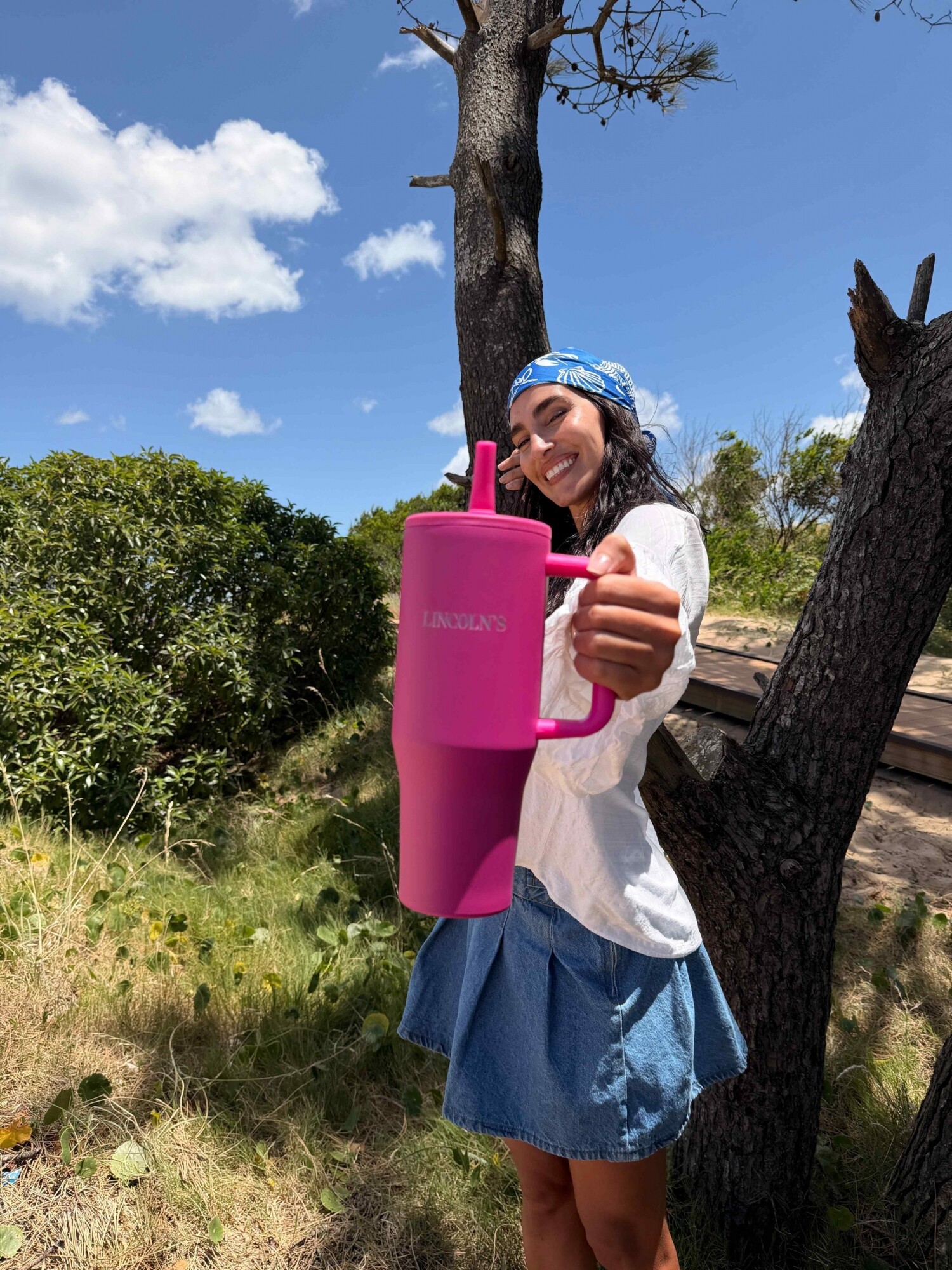 Vaso térmico de doble pared con asa y sorbito. Mantiene tus bebidas frías o calientes por más tiempo. Sus diseños coloridos ofrecen estilo y funcionalidad, ideal para cualquier ocasión. ¡Práctico y moderno!