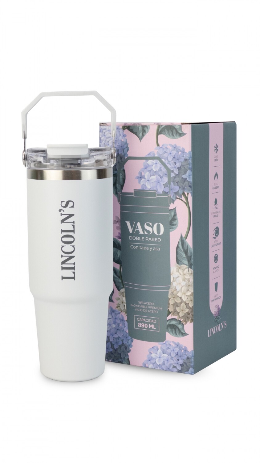 Disfruta tus bebidas a la temperatura perfecta con este vaso térmico de 887 ml. Fabricado en acero inoxidable, conserva el frío o el calor por horas. Con asa cómoda y diseño resistente, ideal para acompañarte donde vayas. Elegí el tuyo!