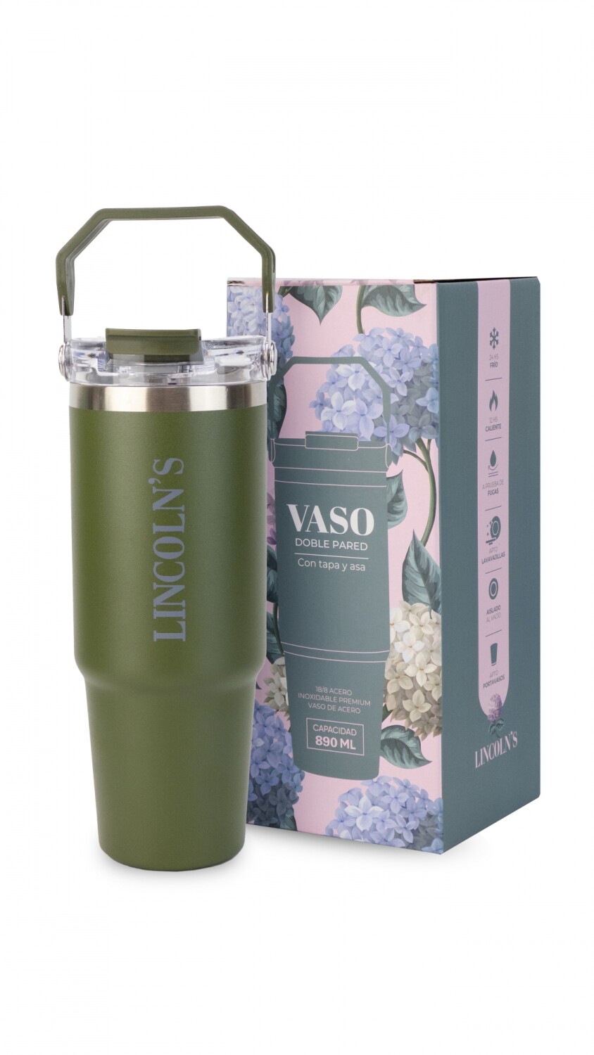 Disfruta tus bebidas a la temperatura perfecta con este vaso térmico de 887 ml. Fabricado en acero inoxidable, conserva el frío o el calor por horas. Con asa cómoda y diseño resistente, ideal para acompañarte donde vayas. Elegí el tuyo!