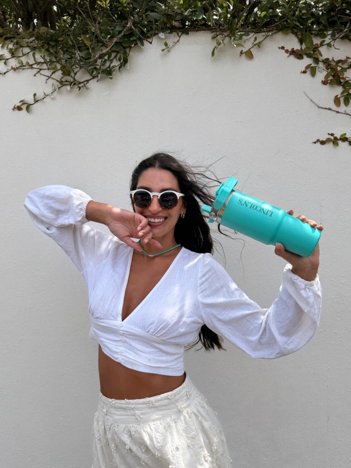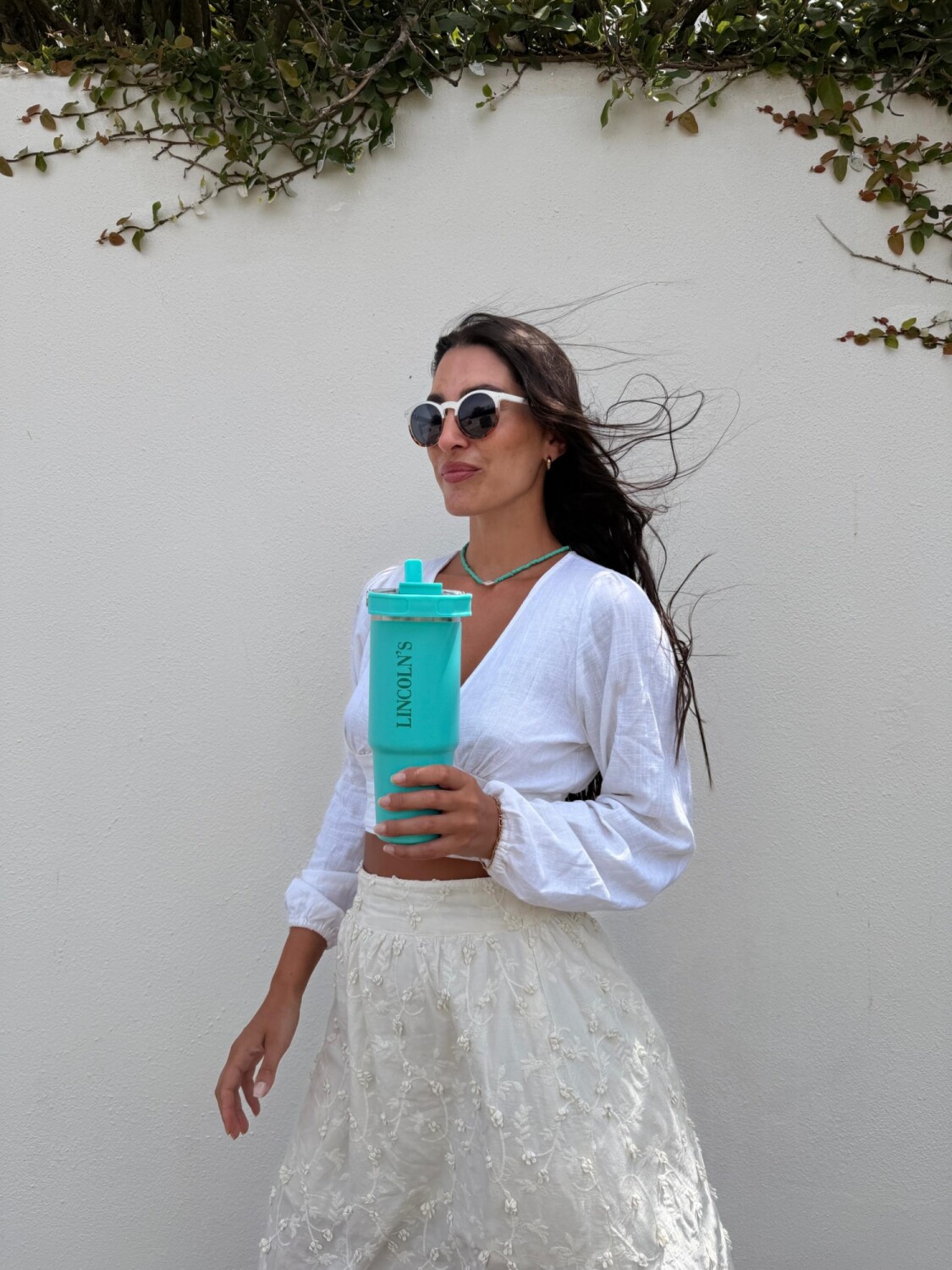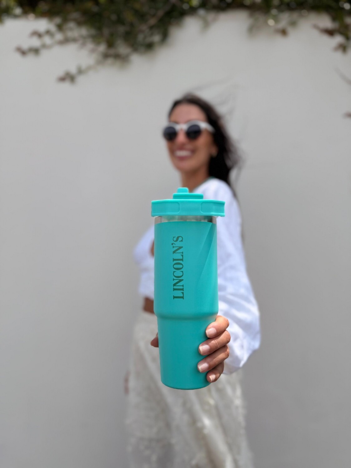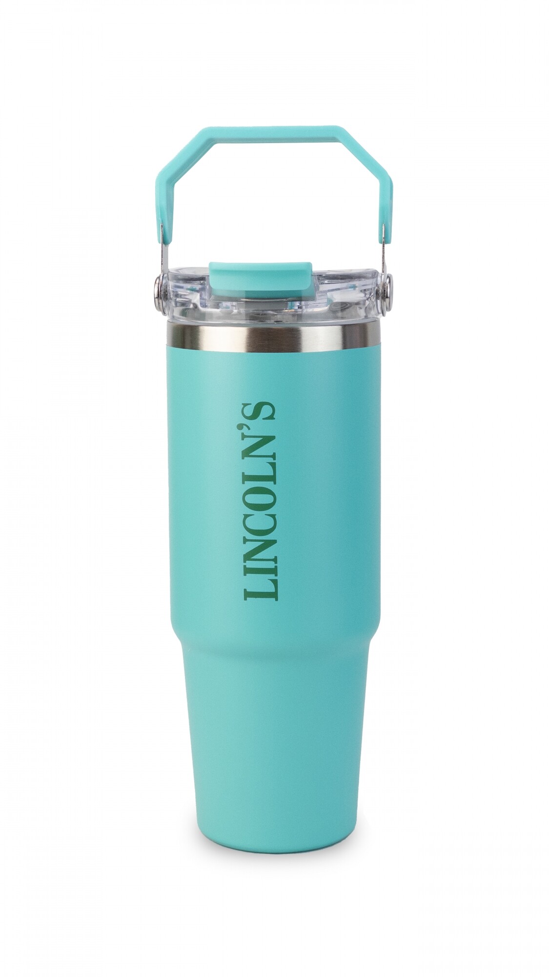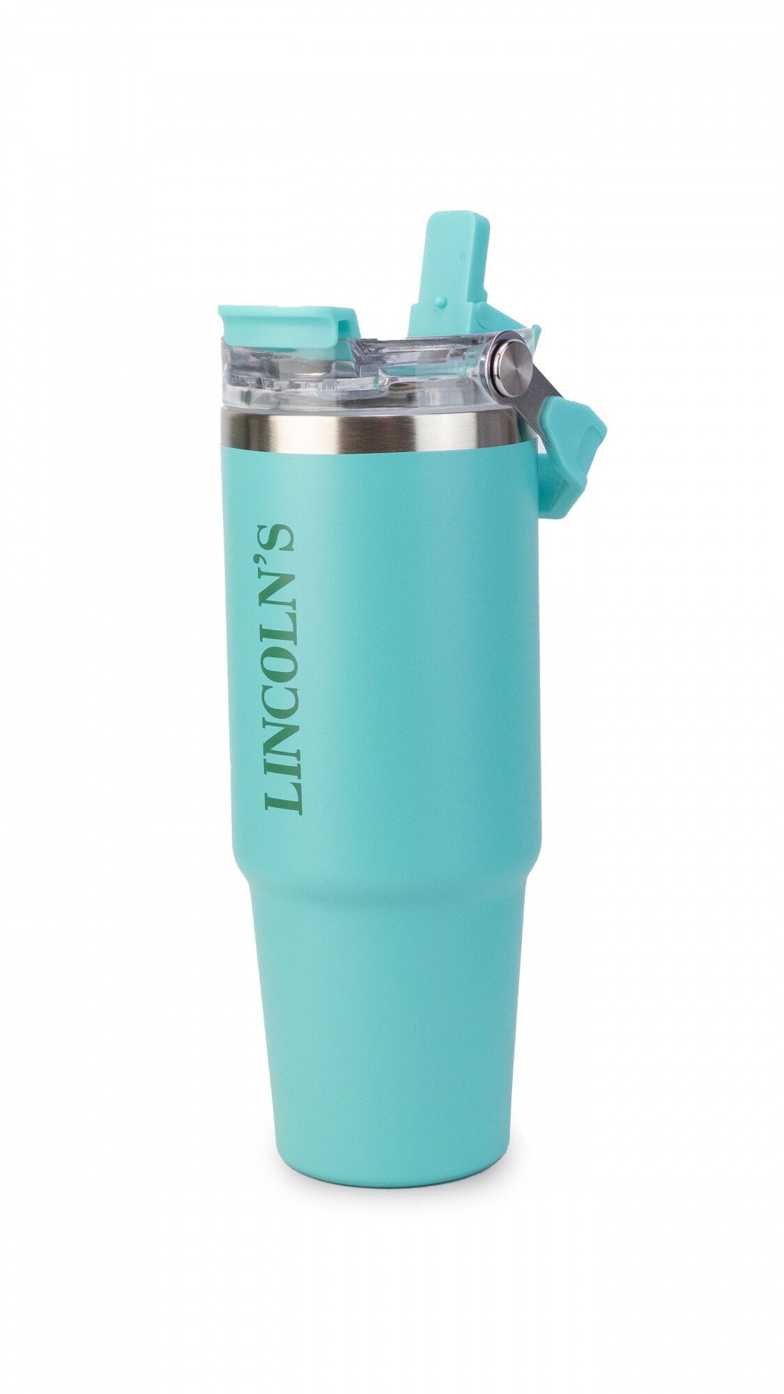 Vaso térmico de 887 ml. Fabricado en acero inoxidable, conserva el frío o el calor por horas. Con pico y asa cómoda resistente, ideal para acompañarte a donde vayas.